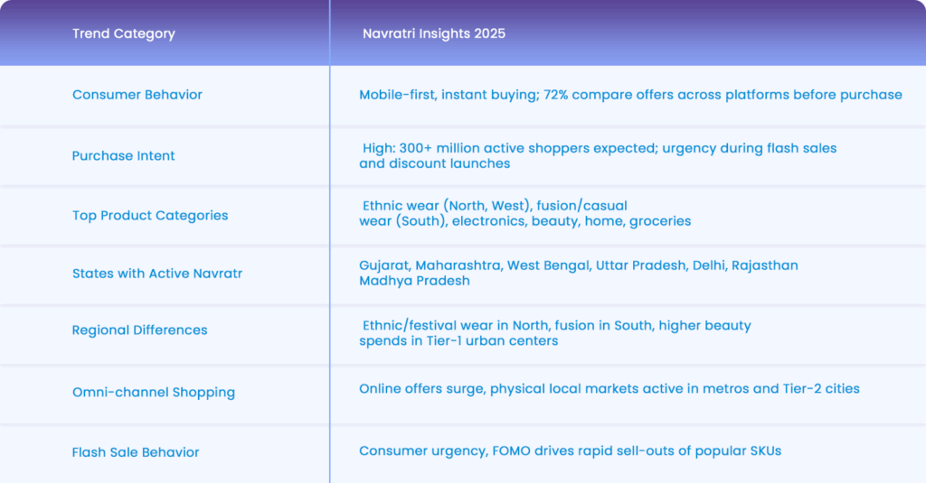 For example, a fashion label might run a “One Festival, Many Looks” campaign, featuring vibrant chaniya cholis for garba nights in Gujarat and elegant sarees for pandal hopping in Bengal. By weaving products into rituals and styling into celebrations, both categories create stories that feel personal, relatable, and festive-ready.