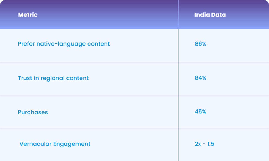 A KPMG study found that 68% of Indian consumers are more likely to engage with brands that advertise in their native language.